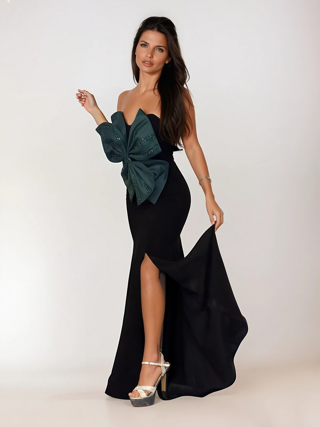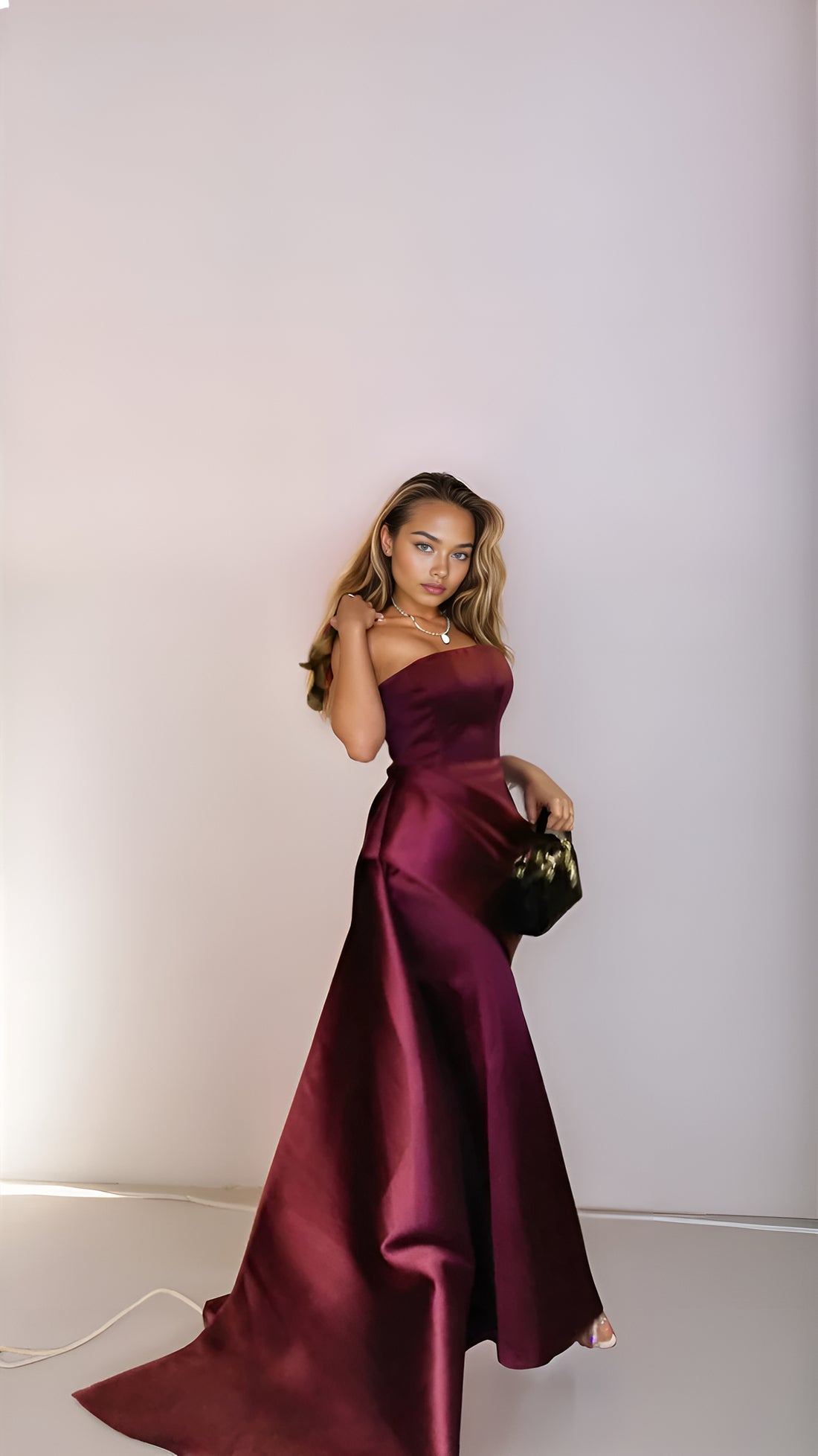 Discover the latest addition to our Parisienne-inspired collection: an elegant trumpet gown that blends luxury and femininity. Featuring a fitted silhouette that gracefully flares out at the skirt for a captivating, regal look, it comes with detachable sleeves for versatile styling across different occasions. Crafted from premium fabric that balances comfort and sophistication, this gown embodies the essence of Parisian elegance, making it perfect for special events or elevated looks.